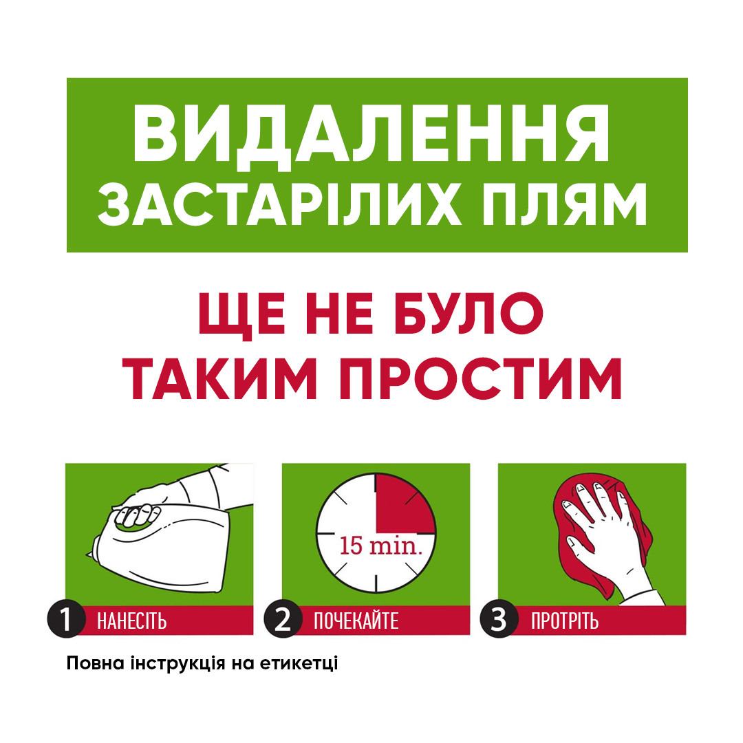 завжди застосовуйте засіб першим, засоби для виведення плям інших виробників можуть хімічно зафіксувати пляму, і її буде неможливо видалити;