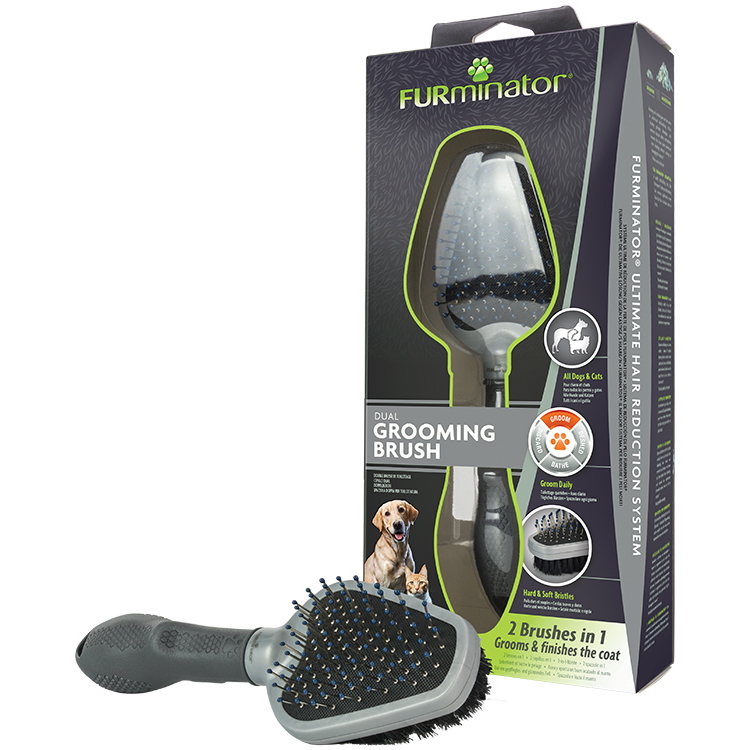 Двойная щетка FURminator имеет две разные стороны, которые служат разным целям. С одной стороны, вы найдете прочные жесткие щетинки, которые распутывают шерсть и помогают удалить любую грязь, а также помогают прочесывать спутывания. Другая сторона сделана из мягкой щетины кабана, которая помогает сохранить естественную гладкость и блеск шерсти. Эта щетка для кошек и собак имеет эргономичную противоскользящую рукоятку, которая делает ее удобной и удобной в использовании.