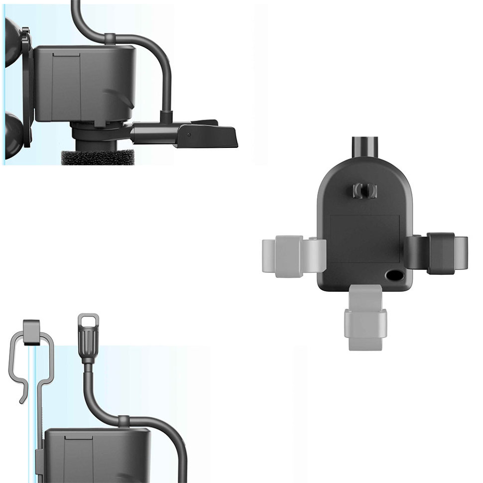 • 2 системи крепления - 1) на присосках, которые оснащены специальным «хвостиком» для удобного открепления от стекла аквариума; 2) на планке, для крепления на стенку аквариума