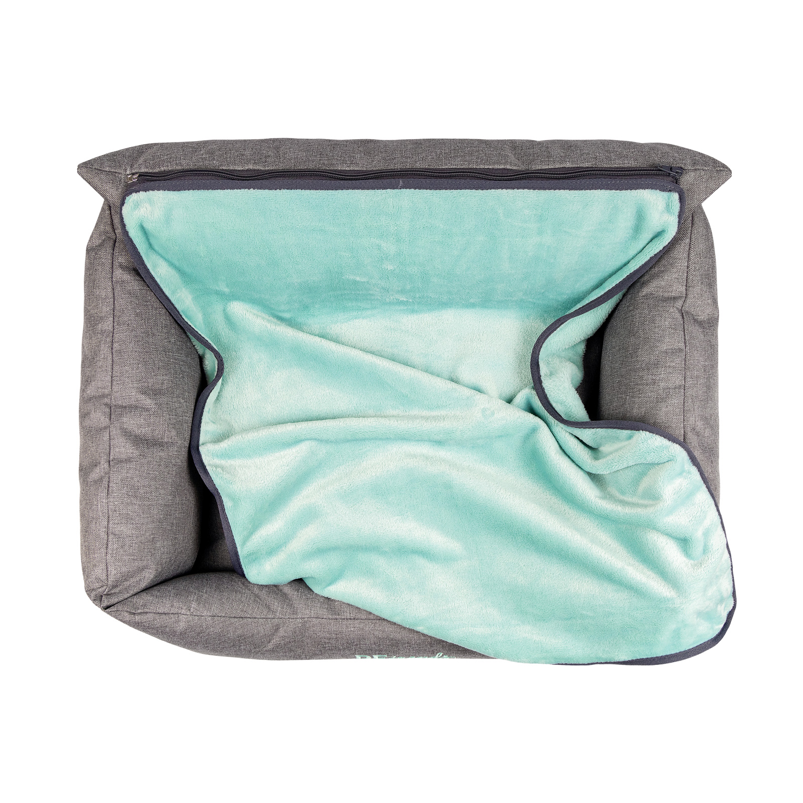 Лежак сочетает в себе практичность и удобство одновременно. Мягкий плюшевый плед отстегивается с помощью змейки.
