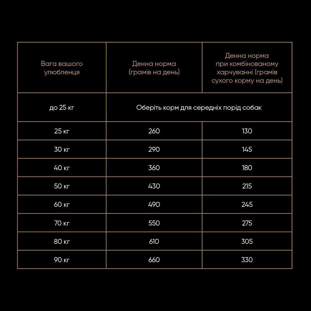 | *норми годування є середньостатистичними, та можуть корегуватися на +-20% в залежності від активності улюбленця, метаболізму та температур навколишнього середовища |