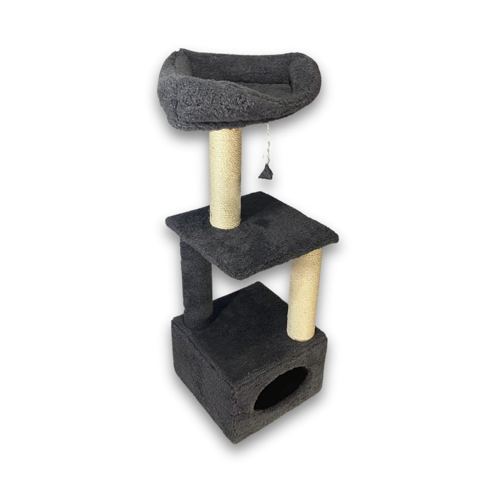 Дряпка з будиночком, майданчиками на стовпчиках та іграшкою дуже сподобається молодим енергійним котам і стане знахідкою для господарів, які хочуть врятувати меблі, двері, фіранки та інші предмети інтер'єру від гострих кігтиків вихованця. Розважальний комплекс з будиночком дозволить направити енергію котика в потрібне русло: по майданчиках можна стрибати, барабан стане місцем для відпочинку і гри з підвіскою, стовпчики-дряпки з обмоткою з сизалю дозволять задовольнити природні потреби в заточуванні кігтів.