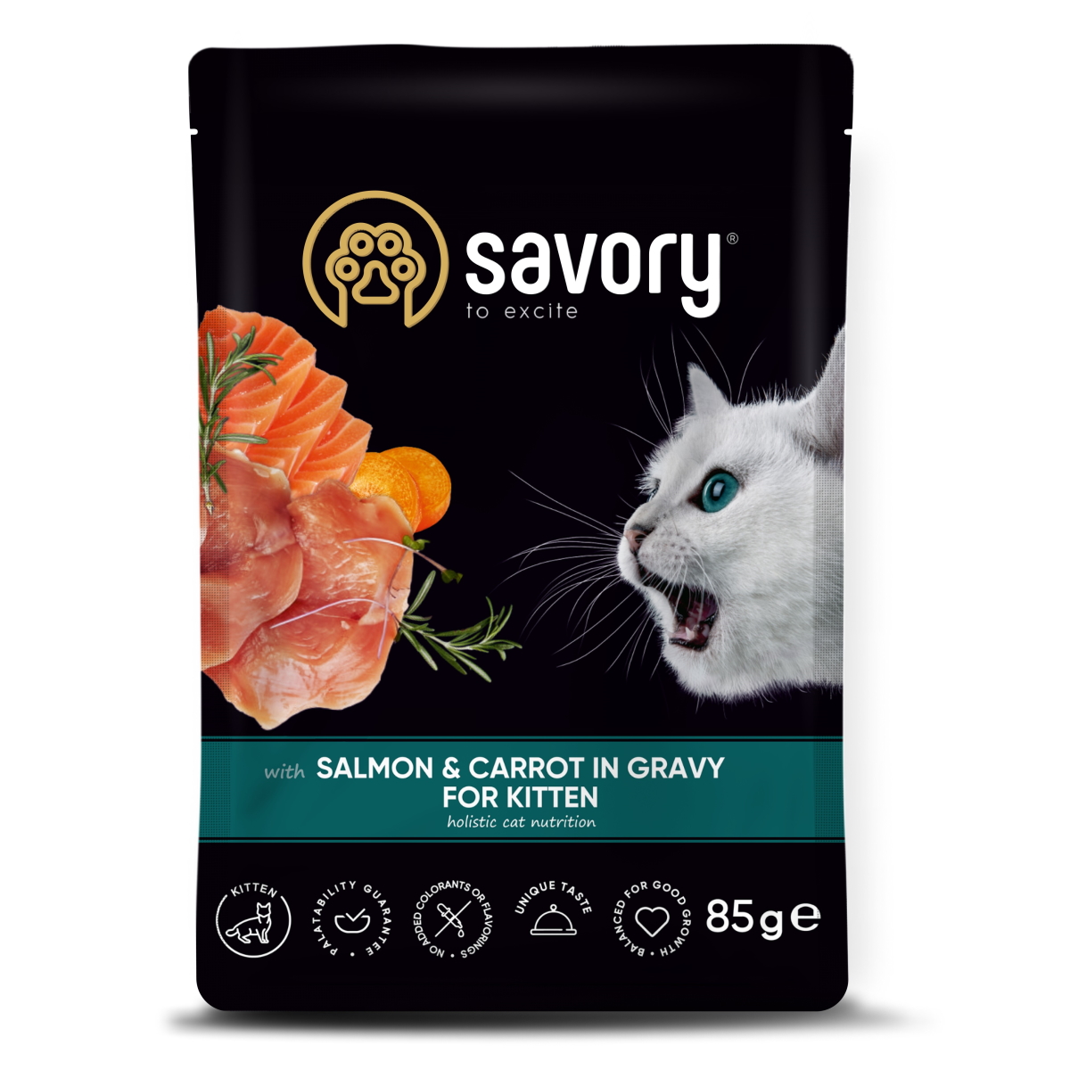 Влажный корм для котят Savory лосось с морковью в соусе 85г
