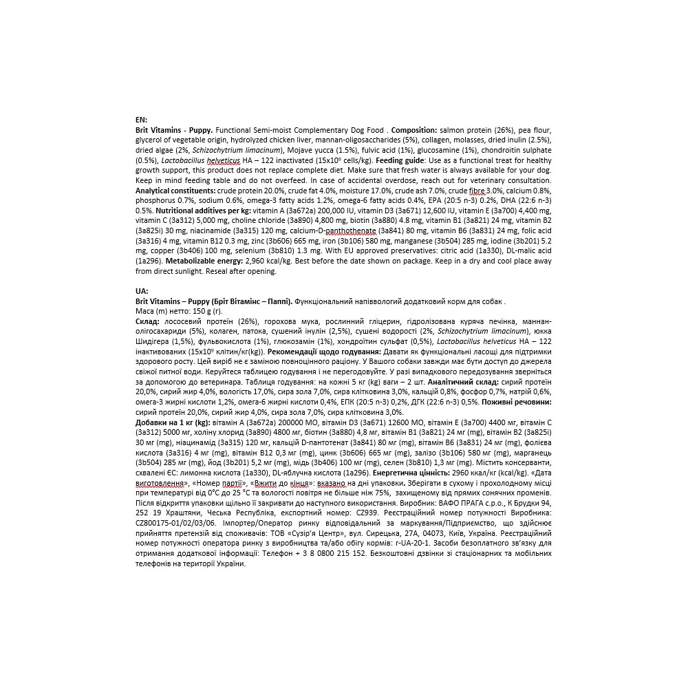 Вітаміни для цуценят Brit Vitamins Puppy для здорового розвитку 150г