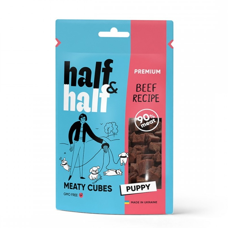 Ласощі для цуценят Half Half м`ясні кубики з яловичиною 100г