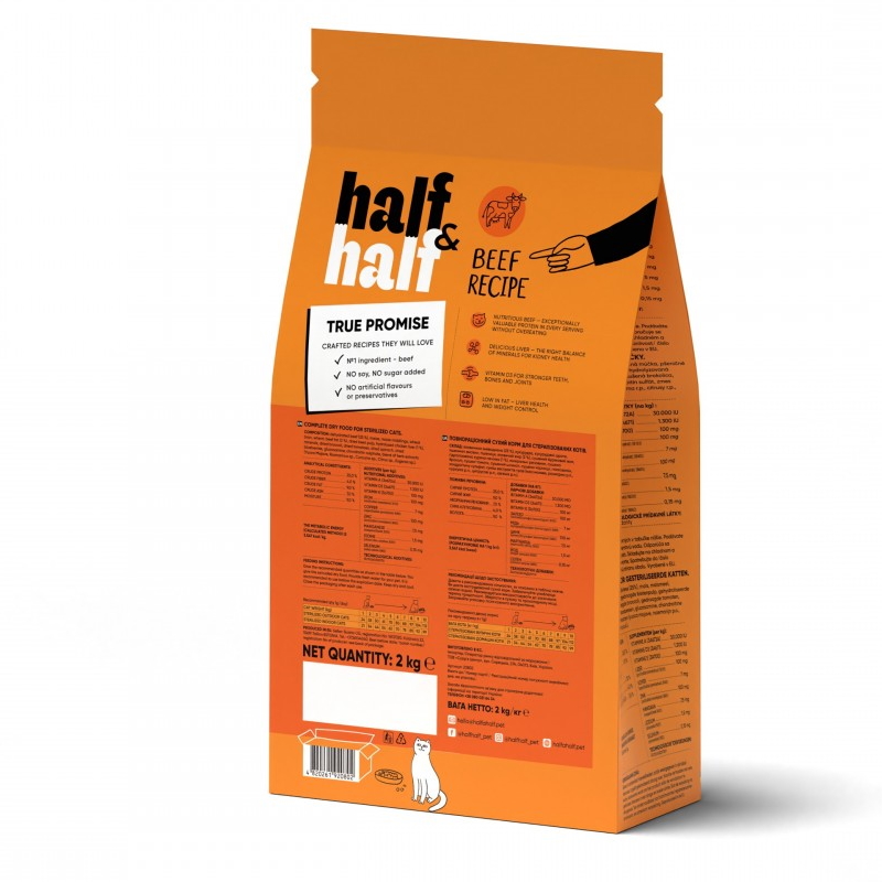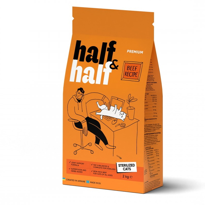 Сухий корм для стерилізованих котів Half Half з яловичиною 2кг