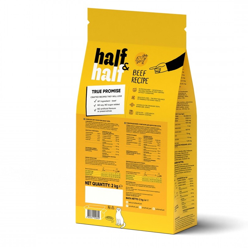Сухий корм для дорослих котів Half Half з яловичиною 2кг