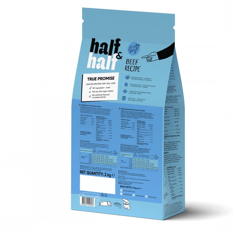 Сухий корм для цуценят усіх порід Half Half із яловичиною 2кг