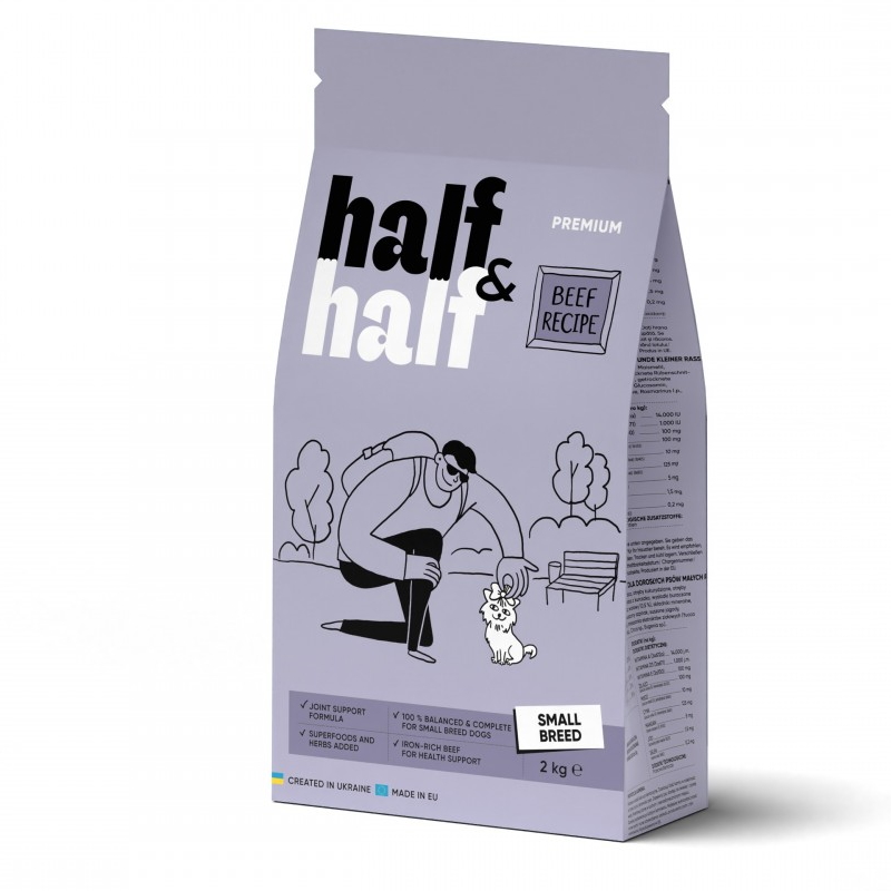 Сухий корм для дорослих собак маленьких порід Half Half із яловичиною 2кг