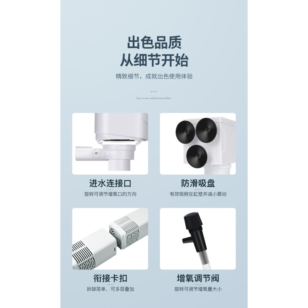 Описание: Многофункциональная серия внутренних фильтров для аквариума YJY обеспечивает фильтрацию, аэрацию и циркуляцию воды в аквариуме.