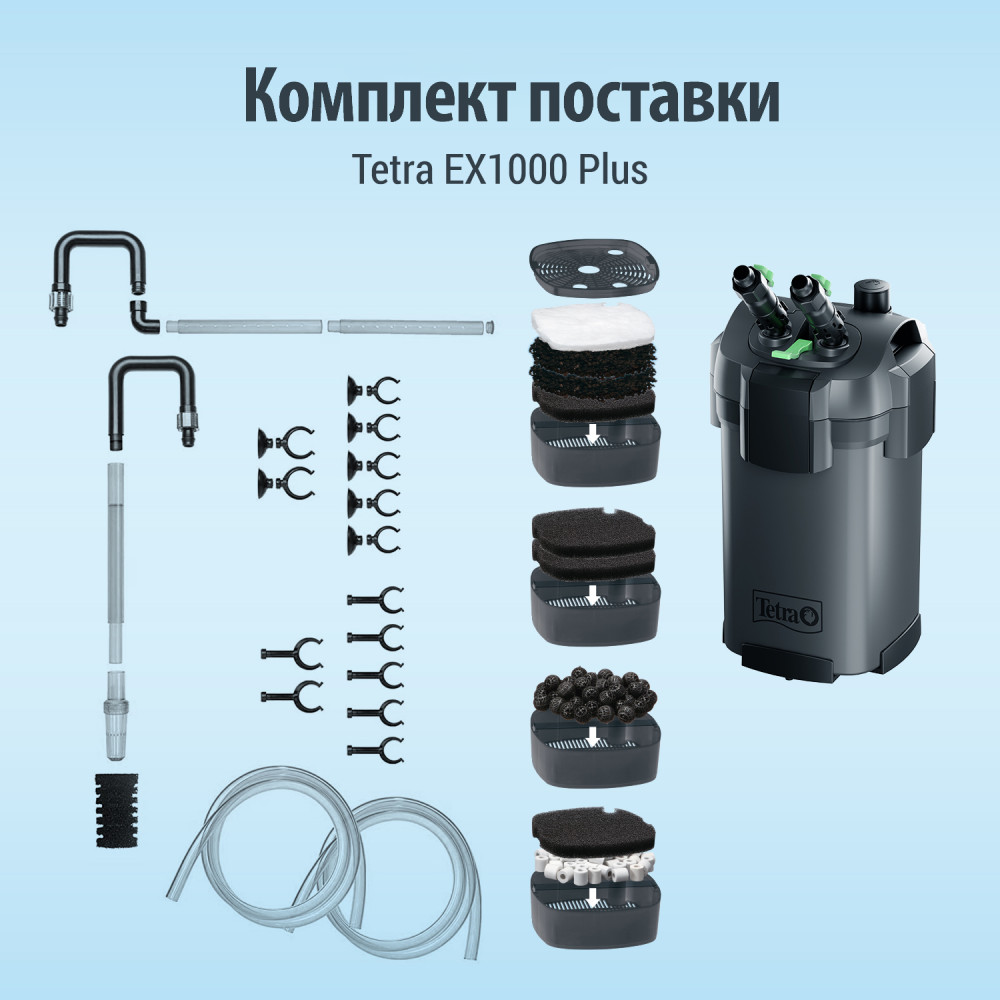 Для поддержания здоровья рыб и растений необходима непрерывная фильтрация аквариумной воды. Полный набор с внешним аквариумным фильтром Tetra EX 1000 Plus обеспечивает исключительное качество воды в аквариумах объемом 100 – 300 л. Исключительно мощный, энергоэффективный, тихий.