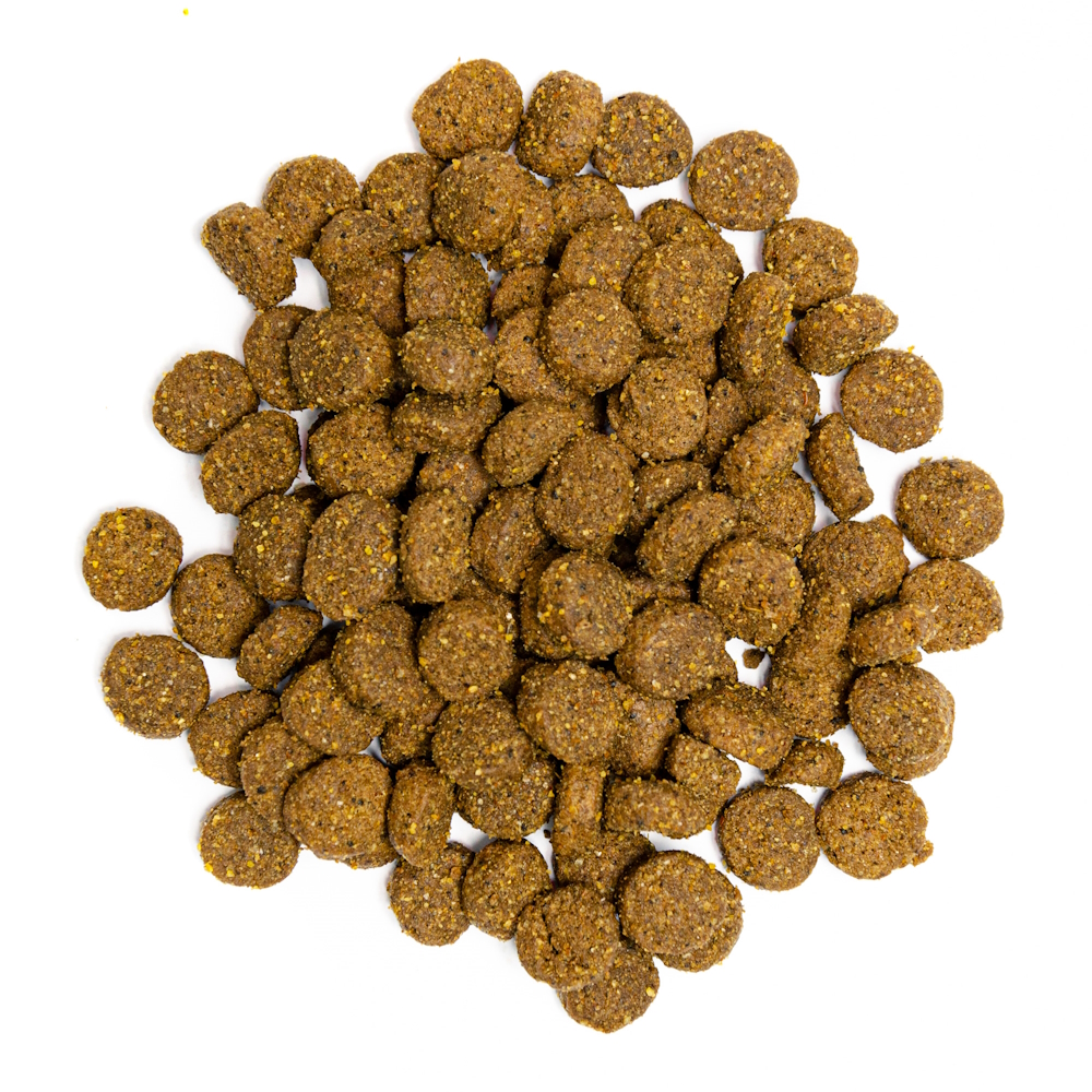 Состав: курица 40% (дегидратированная курица 20%, мука из мяса курицы 20%), кукуруза, картофель (20%), куриный жир (консервированный смесью токоферолов, источник витамина E) (8%), сушеные яблоки, пивные дрожжи , гидролизованная куриная печень (2%), мука из креветок (1,5%), лососевое масло (1%), морские водоросли (0,5%), сульфат глюкозамина (0,02%), корень цикория (источник маннанолигосахаридов (0,018 %), травяная смесь (фенхель, базилик, шалфей (0,018%), фруктоолигосахариды (0,012%), сульфат хондроитина (0,012%) экстракт юкки (Yucca schidigera) (0,01%).