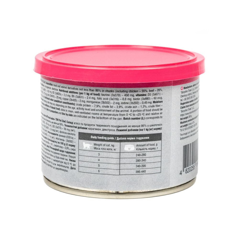 М'ясні шматочки Pet Chef містять таурин – незамінну амінокислоту, яку котячий організм самостійно не виробляє й отримує тільки у складі їжі.
