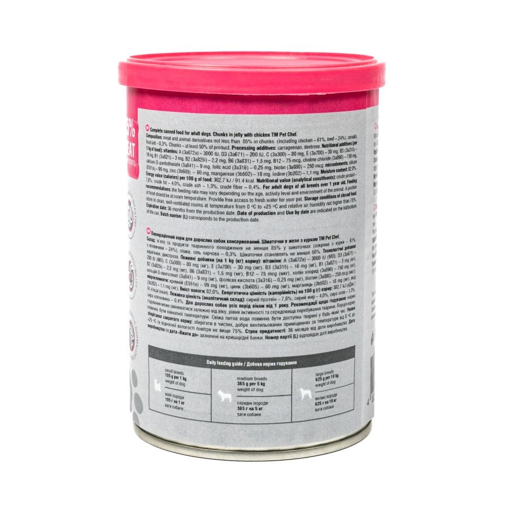 Повнораціонний корм для дорослих собак консервований. Шматочки в желе з куркою ТМ Pet Chef 415 г