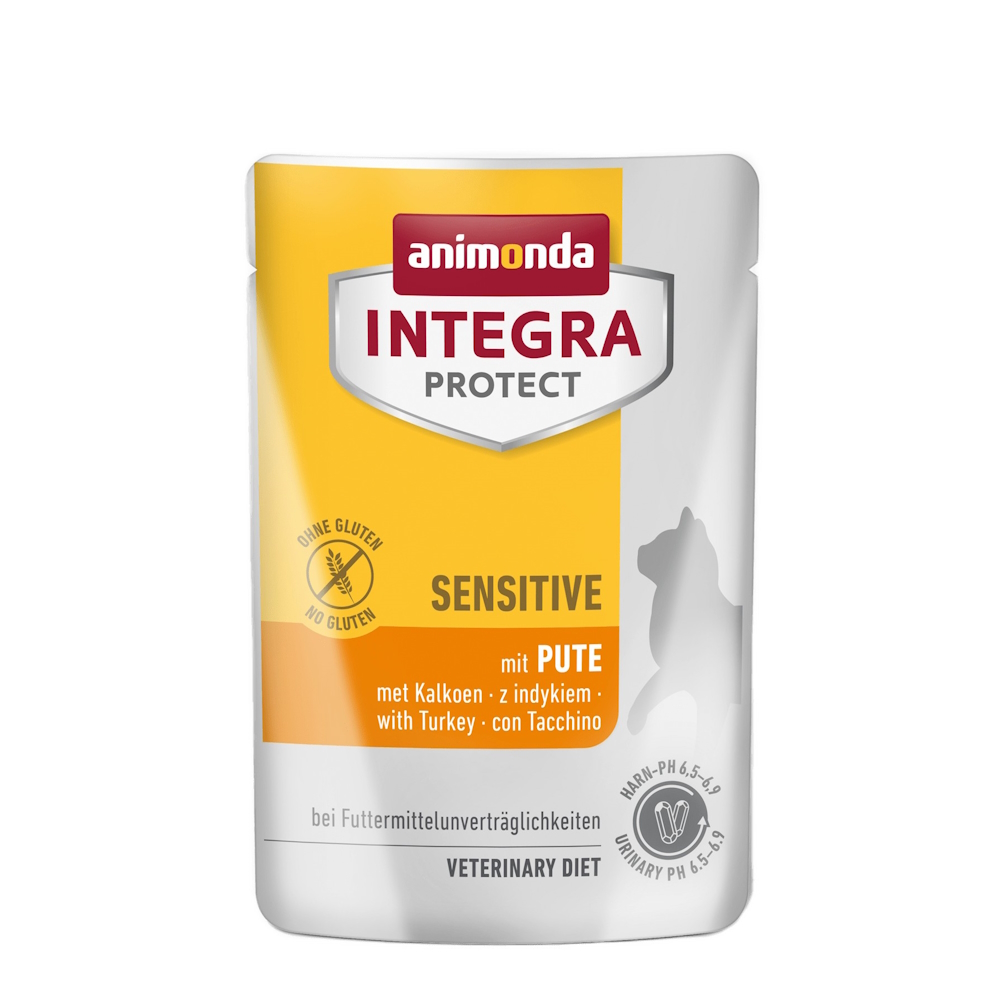 INTEGRA PROTECT Sensitive з індичкою та рисом – спеціальний дієтичний корм суперпреміум класу для котів з харчовою алергією. Містить лише два джерела білка. Вони добре переносяться котами, які страждають алергією на інші тваринні білки. INTEGRA PROTECT Sensitive може допомогти зменшити симптоми харчової алергії, такі як свербіж або діарея та покращити самопочуття кота.