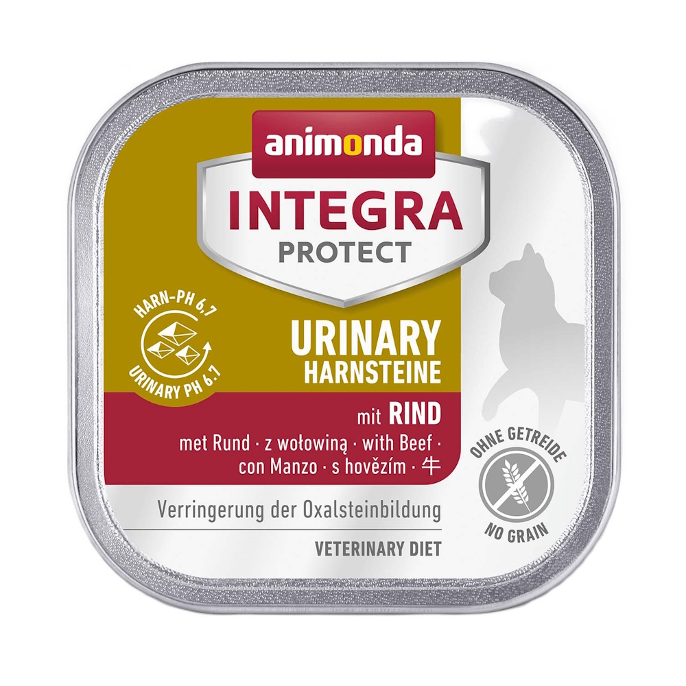 Цей спеціальний дієтичний корм запобігає повторному утворенню кальцієво-оксалатних каменів у котів, наближаючи значення рН їхньої сечі до 6,7, саме при такому показнику ці камені більше не утворюються. INTEGRA PROTECT Urinary з яловичиною чудово смакує навіть хворим котам.