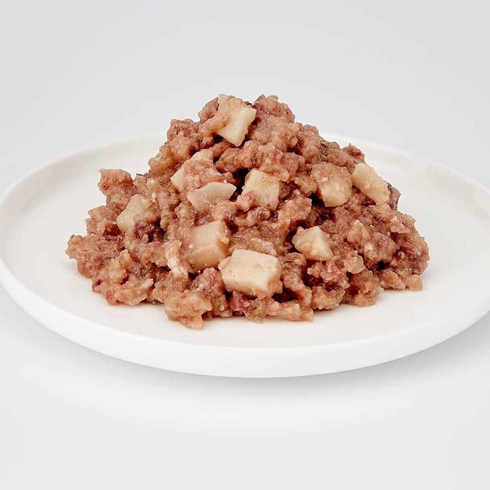 Склад: м'ясо та субпродукти тваринного походження (15% курка, свинина), овочі (картопля), олії та жири, рослинні субпродукти, мінеральні речовини.