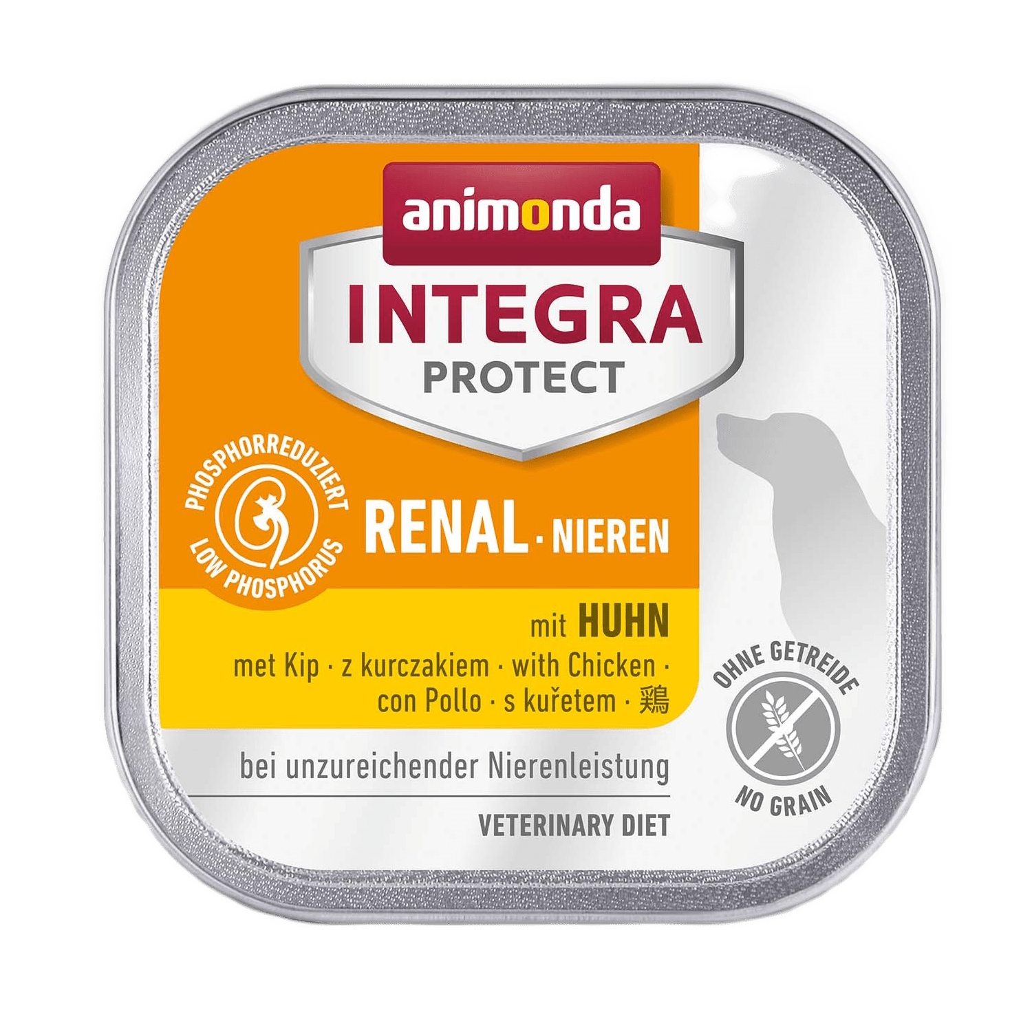 INTEGRA PROTECT Renal з куркою – спеціальний дієтичний корм суперпреміум класу для собак із хронічною нирковою недостатністю. Цей дієтичний раціон розроблено відповідно до особливих харчових потреб собак із захворюваннями нирок. Він містить менше фосфору, ніж звичайні корми. Це уповільнює прогресування захворювання.