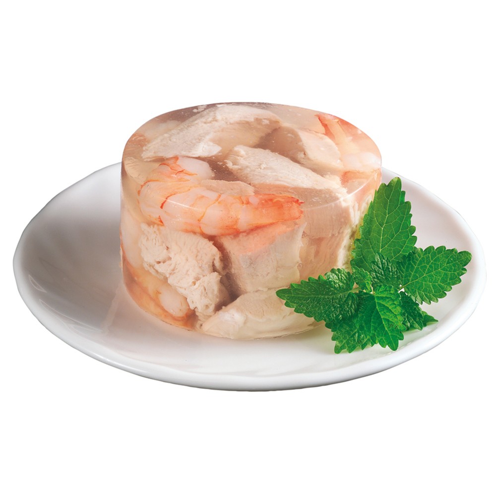 Склад: курка 38,6%, креветки 4,5%, желеутворюючі речовини. Не містить барвників та консервантів. Без ГМО.