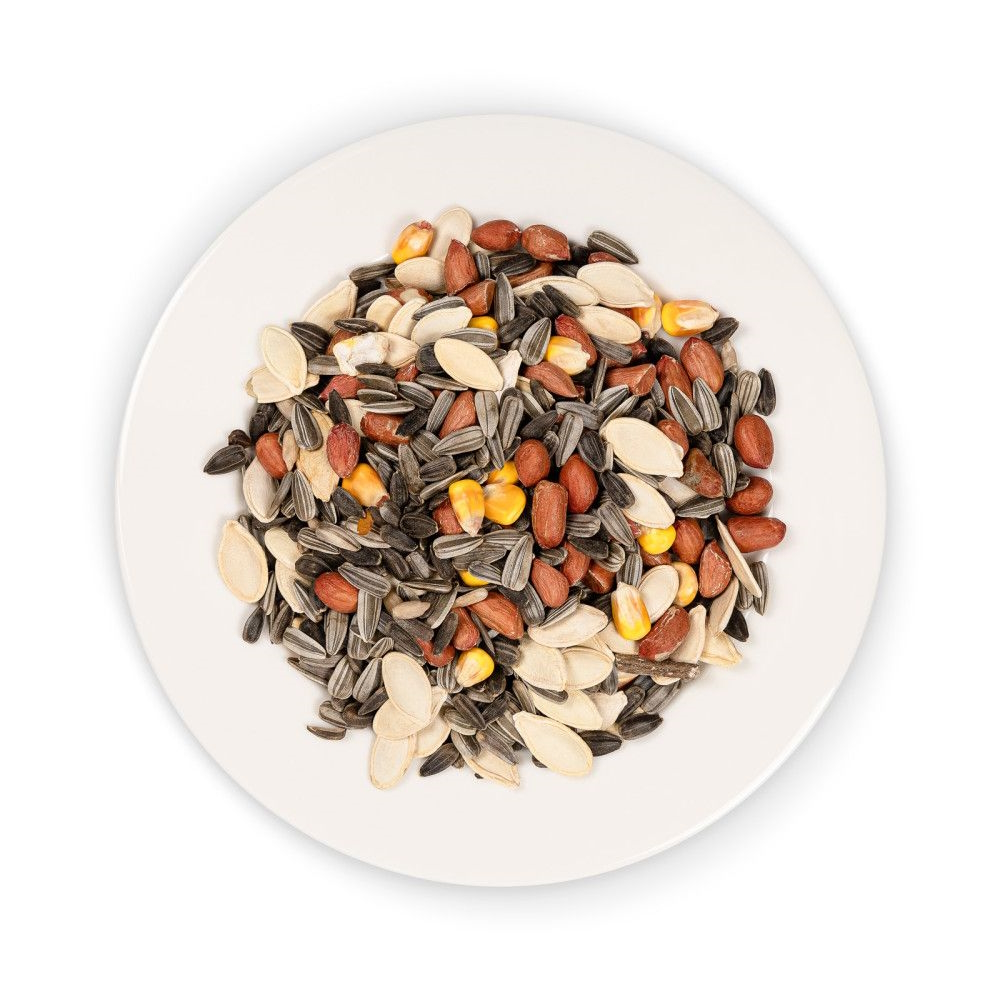 Склад: насіння соняшника, насіння соняшнику сірого, кукурудза, арахіс, насіння гарбуза.