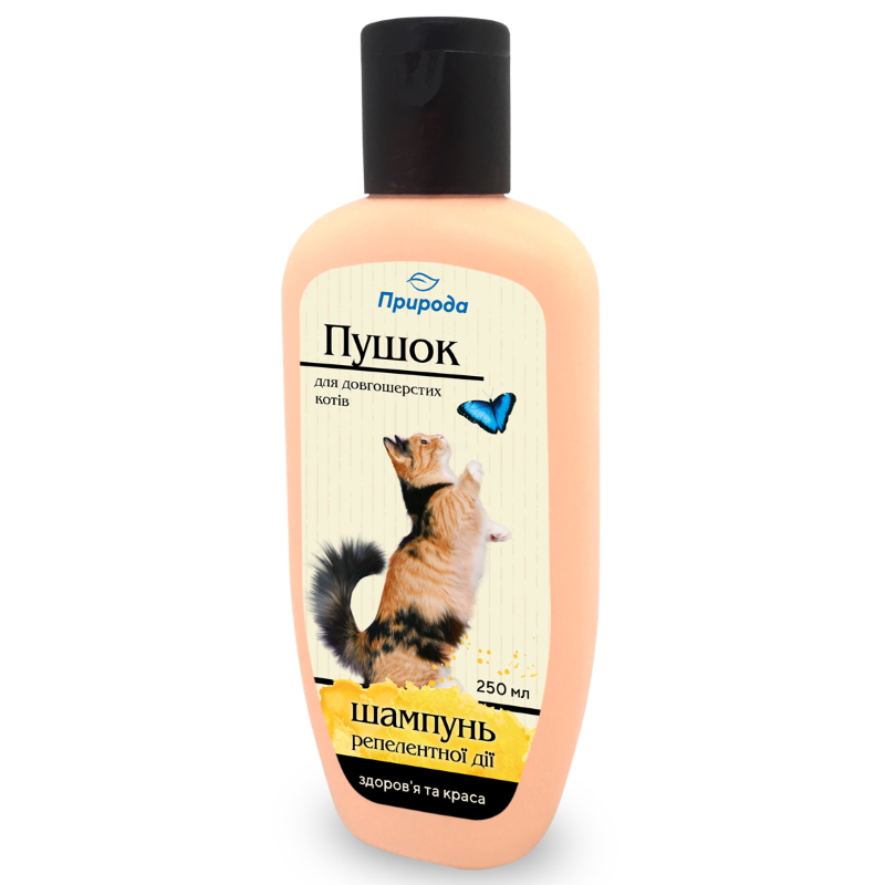 Каталог товаров : Косметика та шампуні для котів > Природа Пушок шампунь репеллентный для длинношерстных котов 250мл