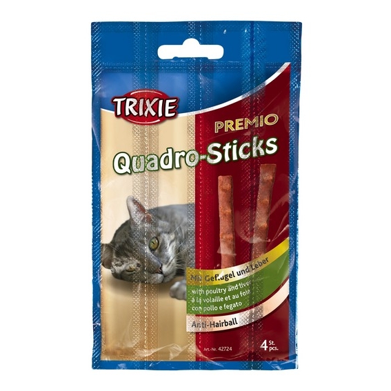 Trixie PREMIO Quadro-Sticks Anti-Hairball лакомство для котов против образования шерстяных комков со вкусом птицы и печени 4х5г