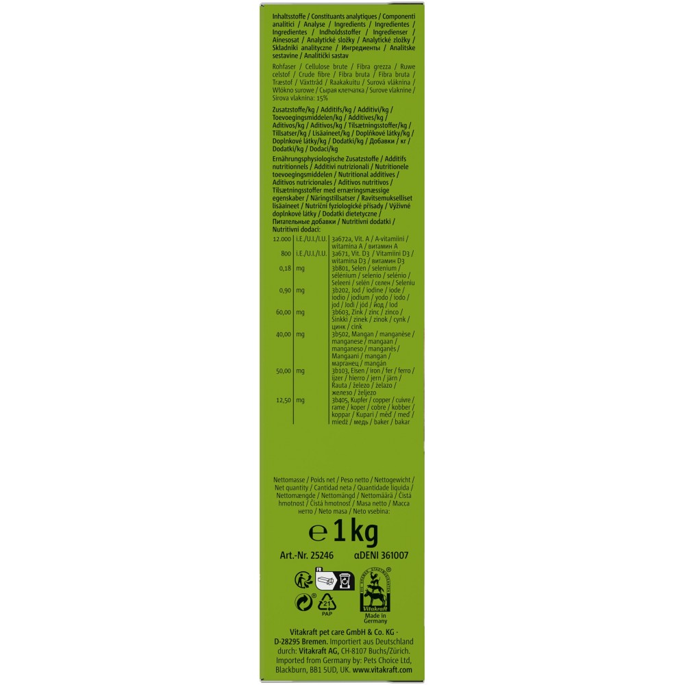 Гранульований корм Vitakraft з високим вмістом солоду ідеально підходить для базового годування домашнього кролика. Гранули, що розроблені відповідно до основних потреб кролика, містять люцерну - джерело великої кількості клітковини для оптимального травлення. Кожна гранула збагачена необхідними Вітамінами. Корм ідеально підходить для вибагливих кроликів, адже, в даному випадку відсутня можливість вибирати частину інгредієнтів.
