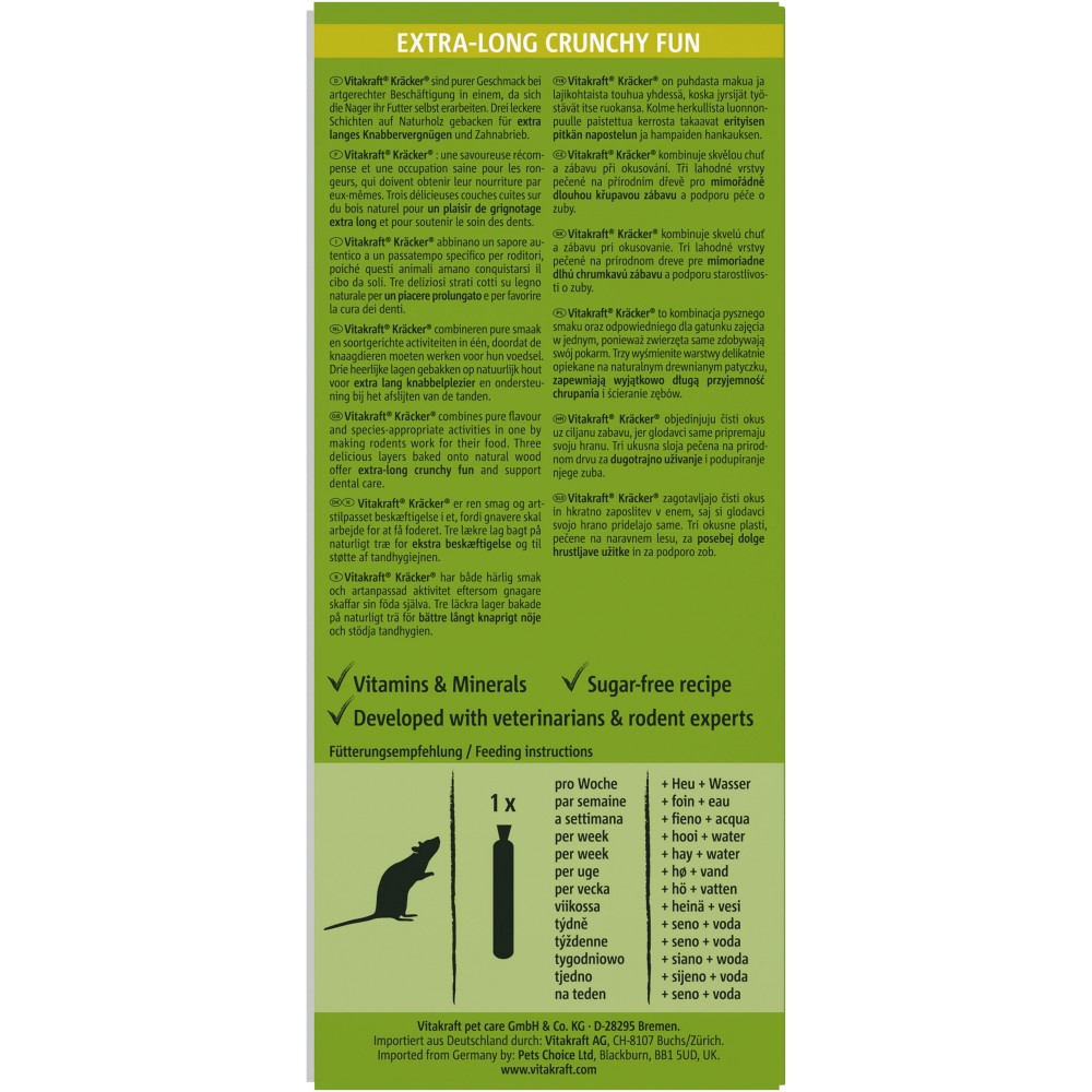 Крекер для пацючків зі злаками і фруктами - смачне і корисне доповнення до основного раціону вихованця. Ласощі є додатковим джерелом вітамінів і мінералів. Виготовлений за унікальною технологією 3-х ступеневого запікання і не містить цукру. В упаковці 2 крекери.