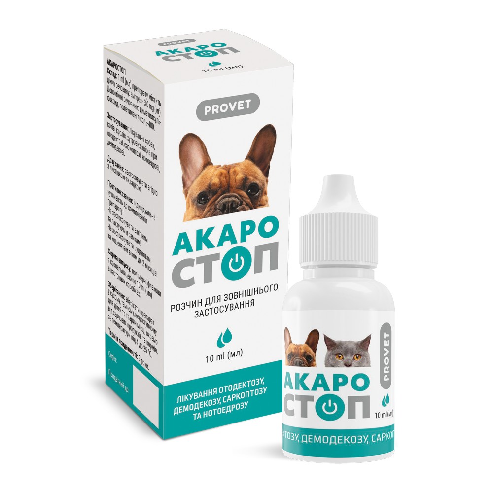 Краплі ProVET Акаростоп акарицидний препарат для котів, собак та кроликів 10мл