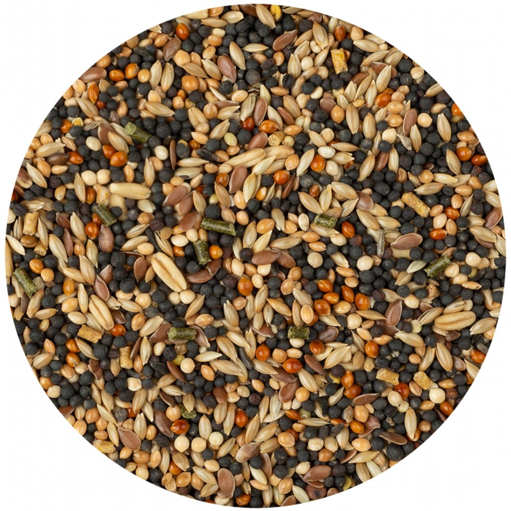 Склад: Насіння - 64.7%, Злаки - 33%, Мінерали, Олії та жири, Продукти рослинного походження, Мед - 0.02%, Дріжджі (бета-глюкан 80 мг/кг), Кальцій - 0.80%, Фосфор - 0.40%.