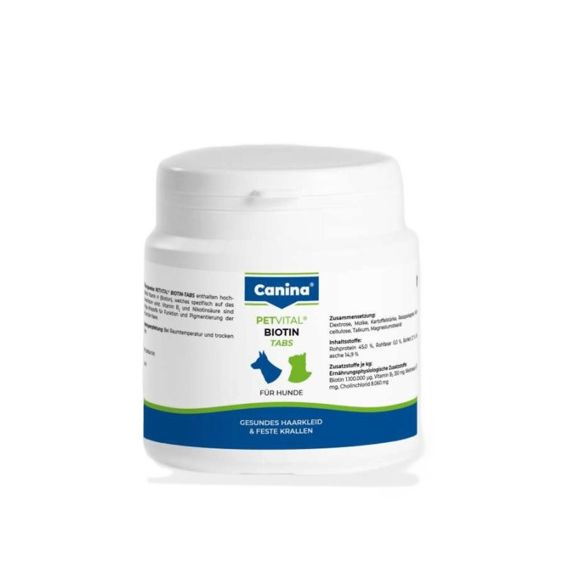 PETVITAL® BIOTINTABS содержат очень высокую долю витамина H (биотин), который имеет специфическое влияние на рост шерсти и пигментов волос.
