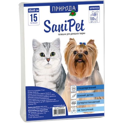 Каталог товаров : Туалети та пелюшки для собак > Природа SaniPet гигиенические пеленки для животных 60х60см, 15шт
