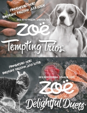 Влажные рационы для котов и собак торговой марки ZOЁ. Основная концепция новинок - это максимально качественное и натуральное питание для домашних любимцев, изготовленное с применением новейших технологий, в соответствии с установленными требованиями стандартами производства продуктов питания для животных.