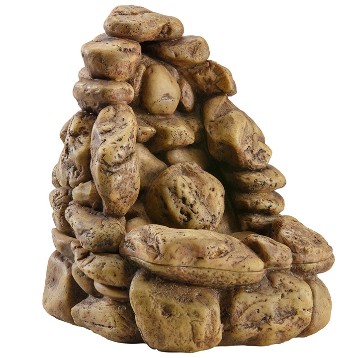 Водопад выполнен в форме скалы, по которой каскадом струится вода Он прекрасно впишется в тропические декорации и дополнит оформление террариума. Кроме того, некоторые ящерицы – к примеру, хамелеоны – в природе не пьют стоячую воду. Необходимую влагу они получают, слизывая капли дождя или росы с растений. Поэтому в неволе их трудно приучить к поилке. Струи воды в водопаде выглядят для них более привлекательно, и они с удовольствием пьют из него.
