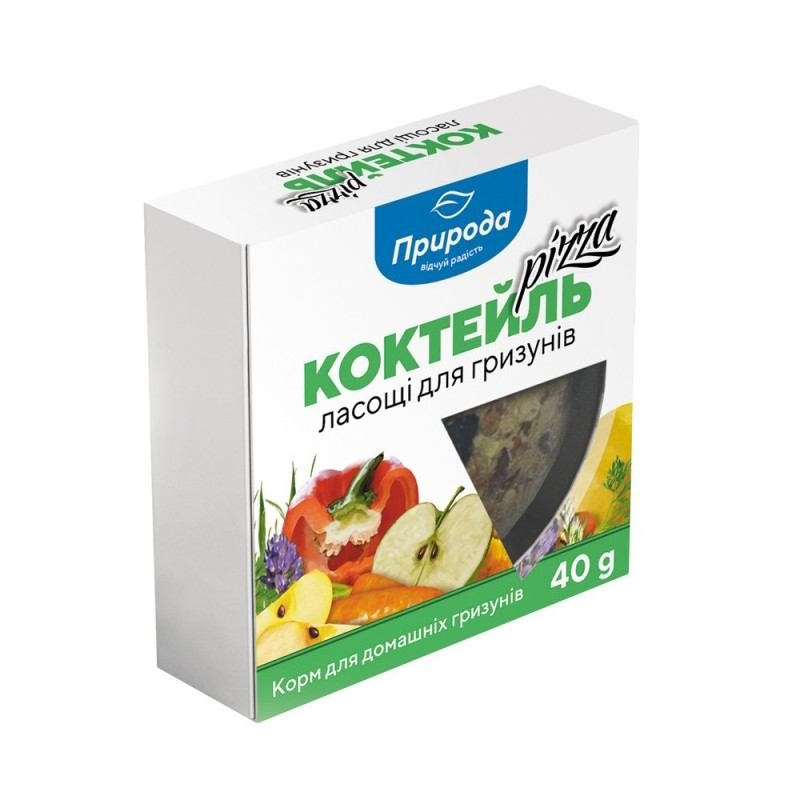 Беззернова рецептура Гризунам для гарного самопочуття і міцного імунітету необхідні овочеві і трав'яні добавки до стандартного раціону. Рецептура ласощів «Піца» розроблена спеціально для декоративних гризунів як смаколик і цікава іграшка.