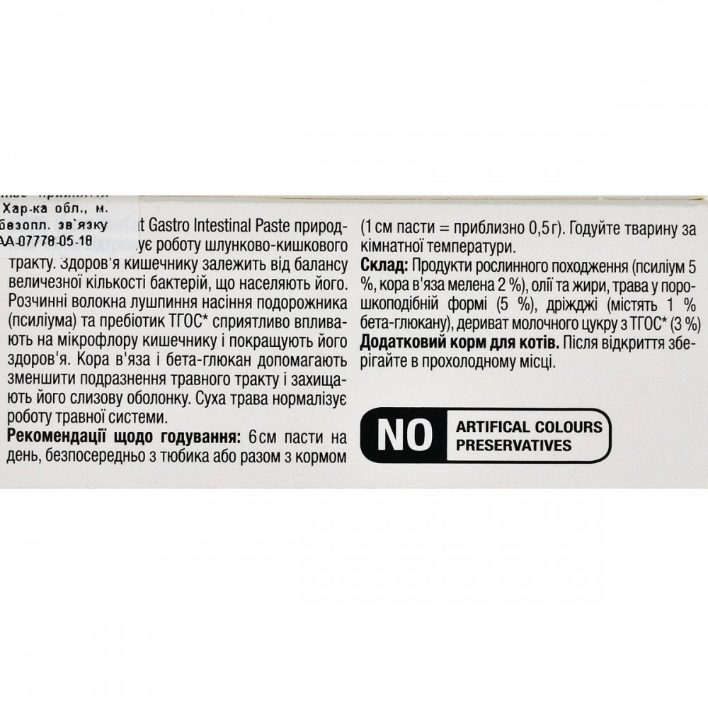 Описание: Паста Expert Line Gastro Intestinal для покращення травлення, 50 г, д/котів, застосовується в якості харчової добавки для дорослих котів всіх порід. Вона природнім шляхом підтримує діяльність шлунково – кишкового тракту, зменшує подразнення травної системи, за рахунок збалансованої кількості поживних бактерій.