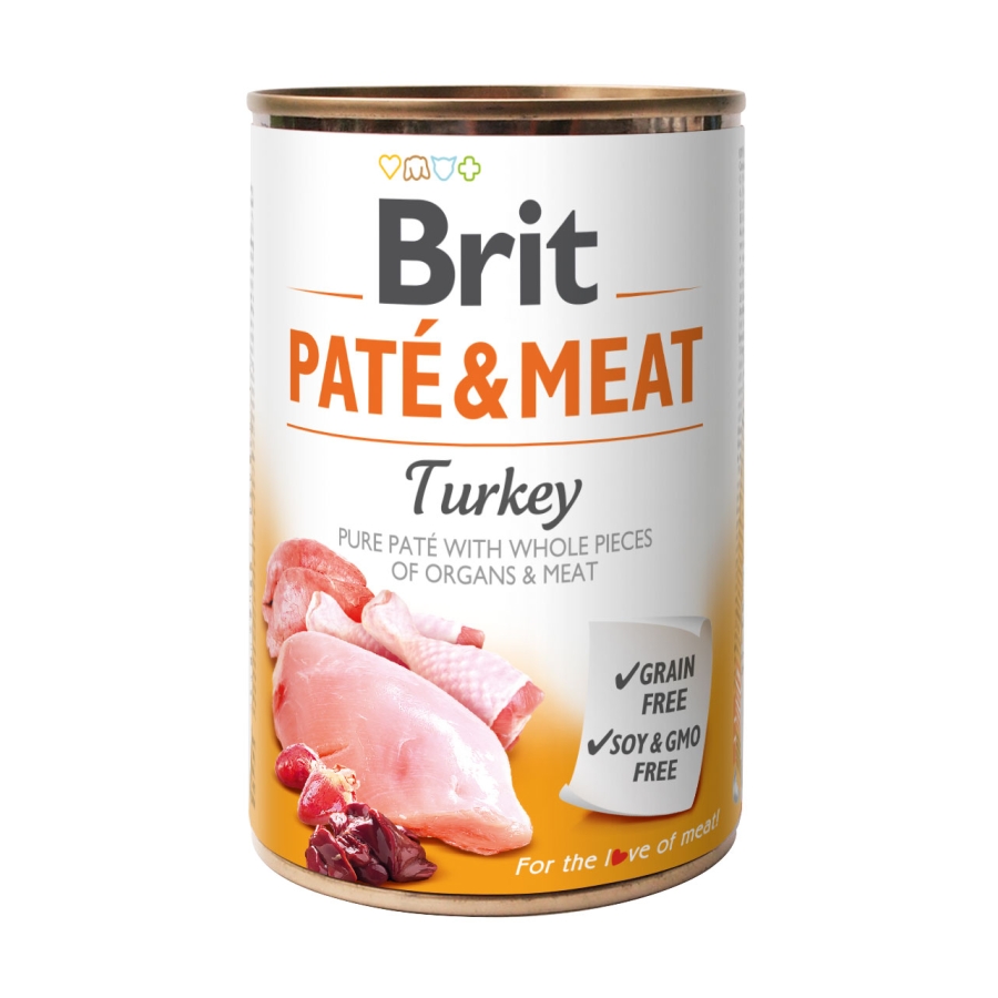 Мясной паштет с целыми кусочками индейки и курицы для собак. Мясо индейки и курицы 70%, остальное чистый мясной паштет. Полноценный корм для собак. Высокое содержание качественного мяса и его щадящая обработка являются гарантией отличного вкуса и запаха. Аппетитное сочетание настоящих кусочков мяса и мясных субпродуктов в паштете удовлетворит вкусы даже самых требовательных собак-гурманов. Brit Paté & Meat – это идеальная добавка к гранулированному корму. Помогает улучшить прием корма и восполнить потерю жидкости.Без глютена, без сои, без ГМО.