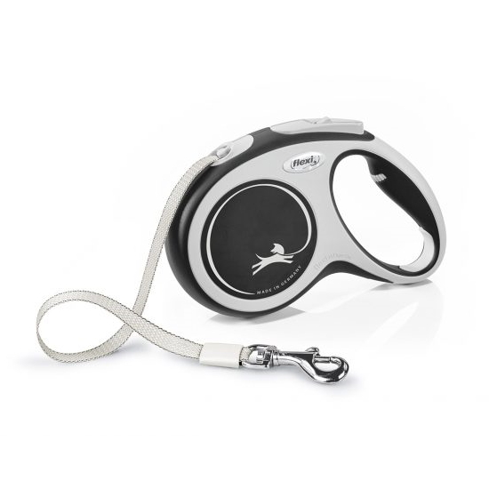 Описание: Flexi New Comfort M Tape поводок-рулетка (лента) черная для собак до 25кг, 5м