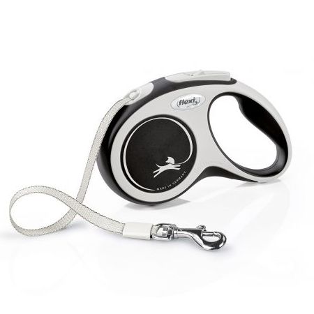 Описание: Flexi New Comfort S Tape поводок-рулетка (лента) черная для собак до 15кг, 5м