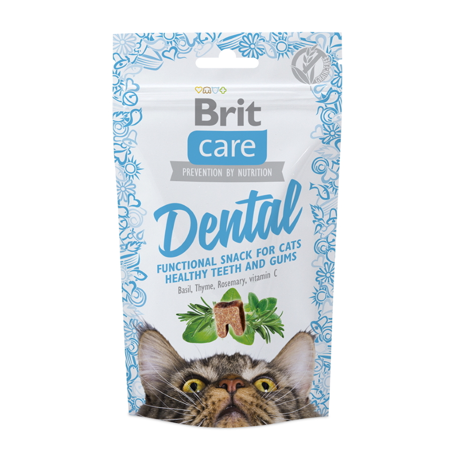 Brit Care Cat Snack Dental лакомство для защиты зубов кошек с индейкой и травами 50г
