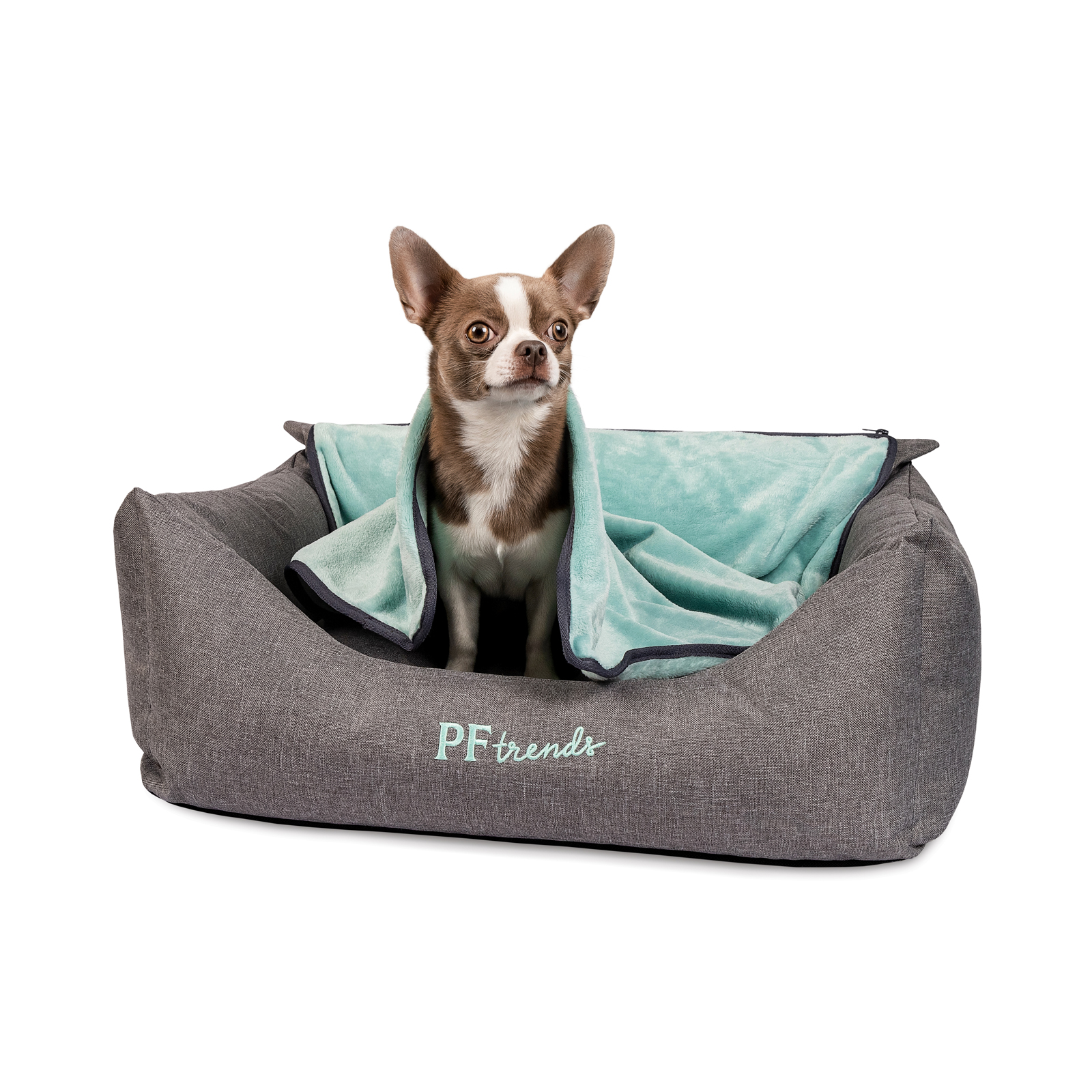 Лежак сочетает в себе практичность и удобство одновременно. Мягкий плюшевый плед отстегивается с помощью змейки.