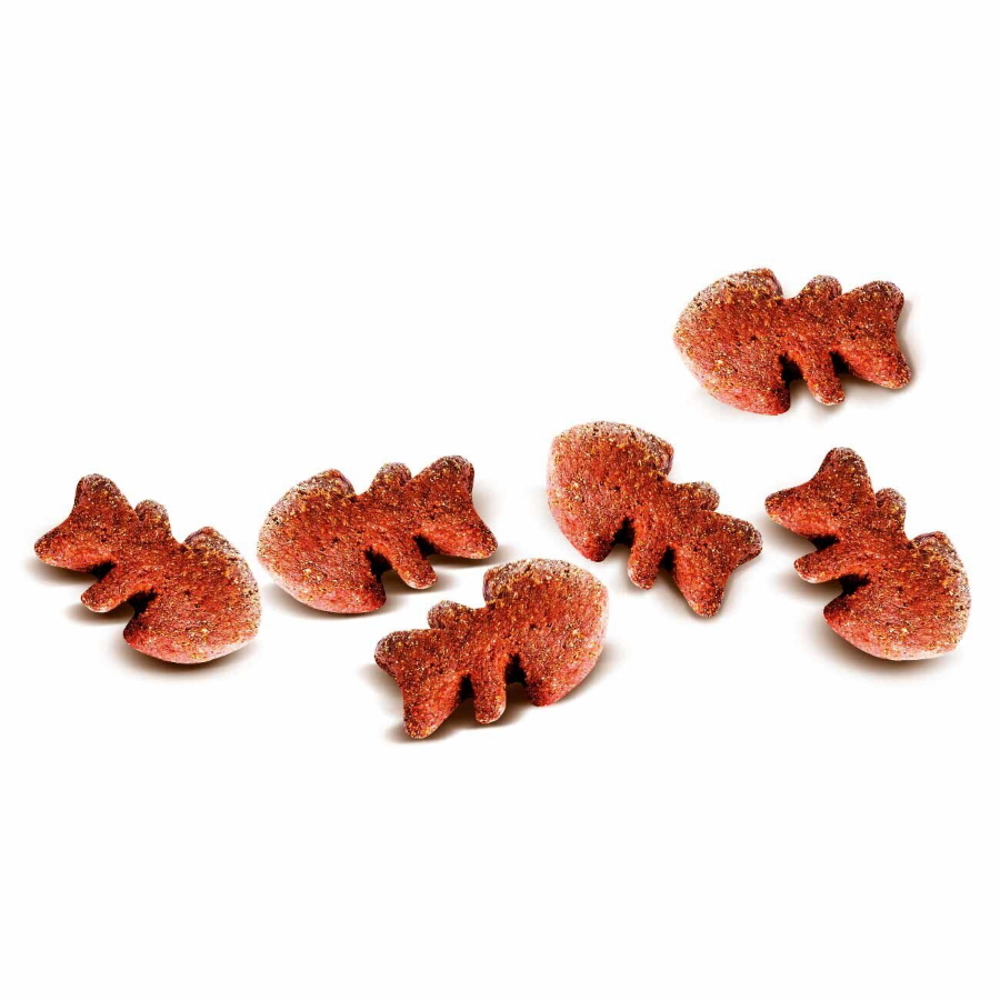 Состав: скумбрия 50% (сушеная скумбрия 35%, свежая скумбрия 15%), тыква 15%, желтый горох 8%, сушеное яблоко 5%, морковь 5%, нут 4%, малина 4%, куриный жир (консервирован токоферолами) 4%, льняное семя 2%, сушеный шпинат, 2%, льняное масло 1%.