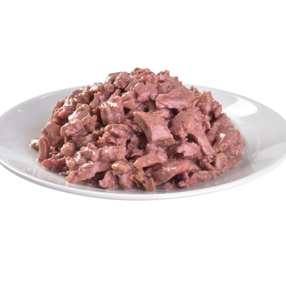 Склад: 85% м'яса у філе (62 % курка, 15% печінка, 4 % індичка, 4 % лосось), бульйон, 1 % обліпиха, 0,5 % красоля, мінерали, гороховий крохмаль.
