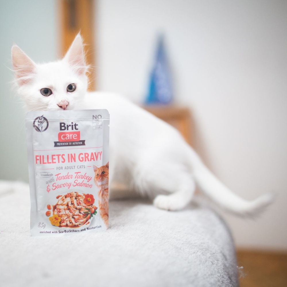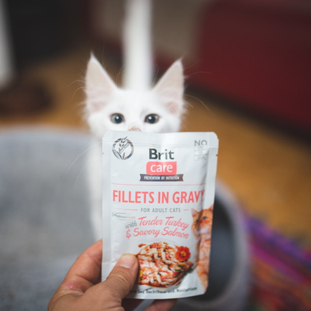 Меню котика має бути різноманітним, смачним і корисним. Делікатесний пакетик Brit Care можна використовувати як повноцінний корм або як доповнення до сухого корму для підвищення різноманітності раціону та апетиту. Корм підійде і для дуже вибагливих котів і котів з проблемним вживанням корму.