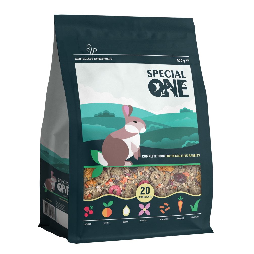 Унікальний корм включає відбірні трави, вітамінізований комбікорм, насіння та інші інгредієнти з природного ареалу проживання кроликів. Рецептура гармонійно поєднала 20 інгредієнтів, серед яких цілющі трави, сушені фрукти, овочі, а також рідкісні делікатеси – шипшина, гібіск, пастернак. Корм включає корисний протеїново-мінеральний гранулят, який покращує загальний стан здоров’я, сприяє зміцненню зубів та кісток, поліпшенню стану хутра.