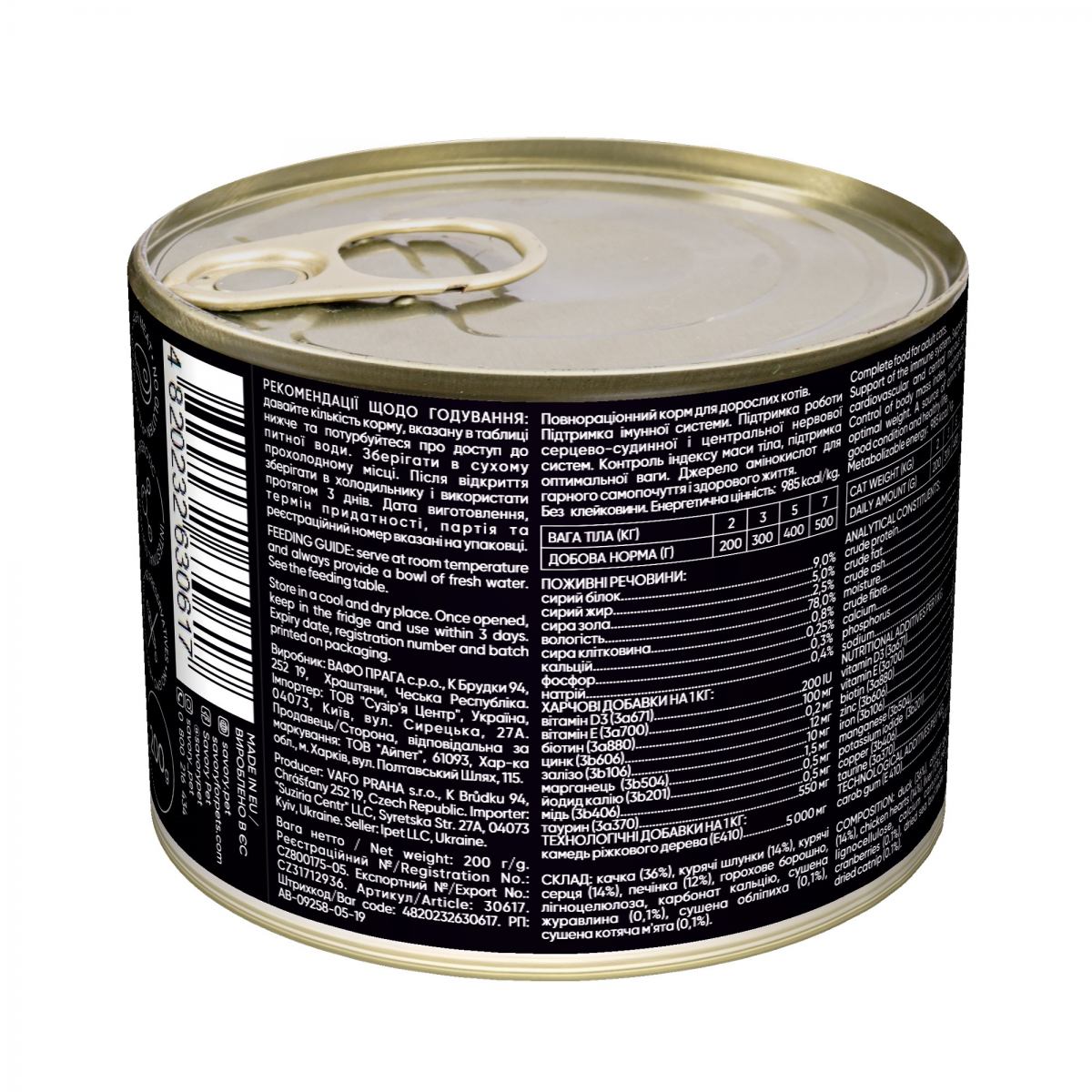 Каталог товаров : Консерви для котів > Консервы для котов Savory с уткой 200г