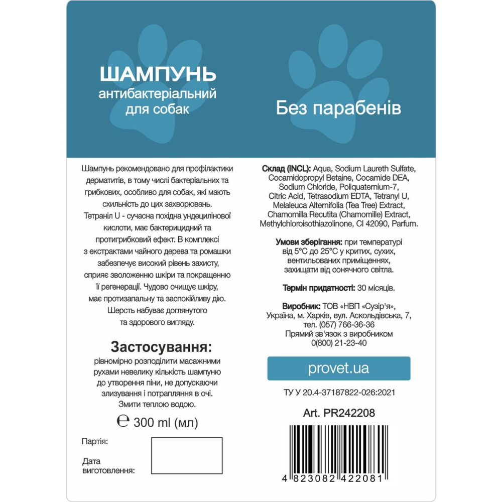 Описание: Шампунь рекомендован для профилактики дерматитов, в том числе бактериальных и грибковых, особенно для собак, имеющих склонность к этим заболеваниям.