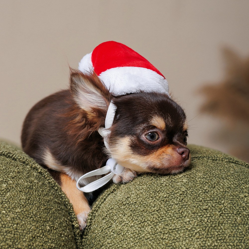 Цей новорічний ковпак перетворить вашого улюбленця на Санта Клауса. Яскрава та якісна шапочка ідеально сяде на собачку завдяки м’якій резинці з петлями для вух.