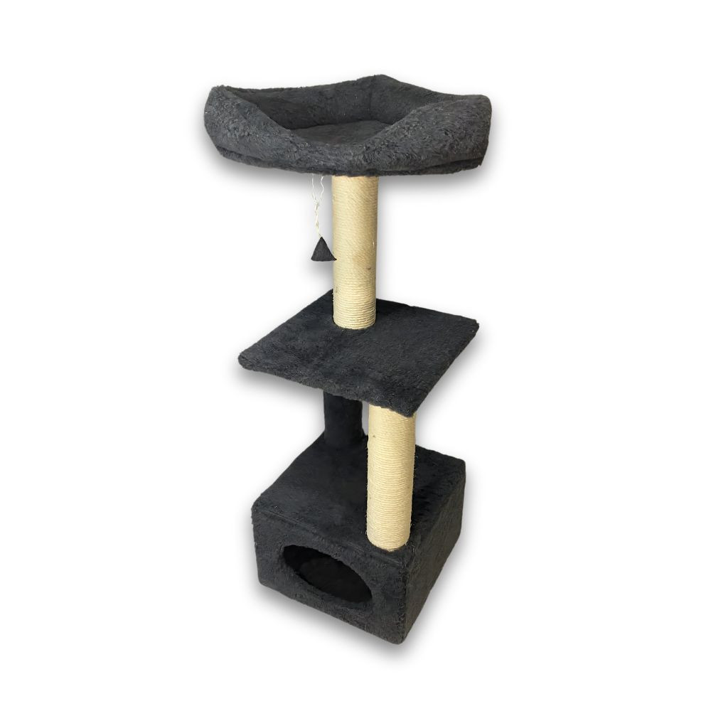 Дряпка з будиночком, майданчиками на стовпчиках та іграшкою дуже сподобається молодим енергійним котам і стане знахідкою для господарів, які хочуть врятувати меблі, двері, фіранки та інші предмети інтер'єру від гострих кігтиків вихованця. Розважальний комплекс з будиночком дозволить направити енергію котика в потрібне русло: по майданчиках можна стрибати, барабан стане місцем для відпочинку і гри з підвіскою, стовпчики-дряпки з обмоткою з сизалю дозволять задовольнити природні потреби в заточуванні кігтів.