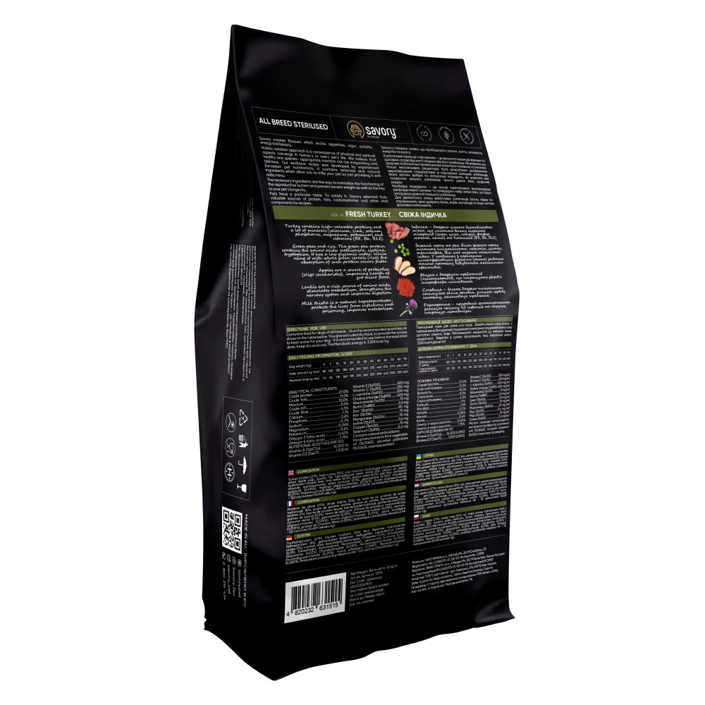 Холістична рецептура зі свіжою індичкою забезпечить легке засвоєння без переїдань. Дієтичне м’ясо сприяє підтримці здорової кондиції собак, після зміни обміну речовин, та профілактиці набору зайвої ваги. Оптимально підійде для кастрованих та стерилізованих улюбленців.
